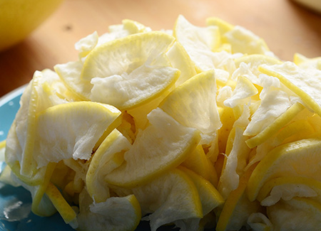 1、用温盐水把柚子泡五分钟,反复揉洗,把柚子皮刮下来,里面的白色物质很苦,不太喜欢太苦的尽量刮得薄一些。