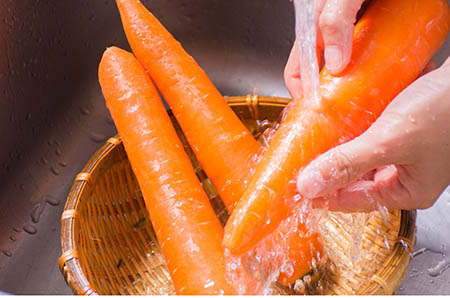 步骤3:将苹果洗干净,去皮,取1/4的分量,切成苹果小丁。