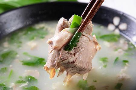步骤2:将泡软的鹰嘴豆放入沸水中,焯烫熟,捞出沥干水分。