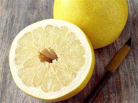 做法:鲜柚子一个,去皮、瓤,榨汁服用