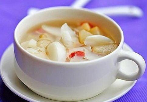 原料:百合20克、雪梨50克、银耳20克、冰糖5克、枸杞3克