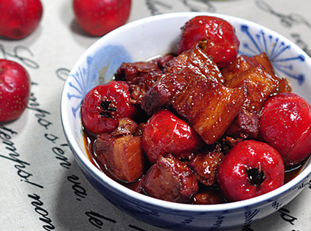 原料:山楂、五花肉、醋、油、姜、料酒、老抽、冰糖、少量八角、盐,胡椒粉,鸡精